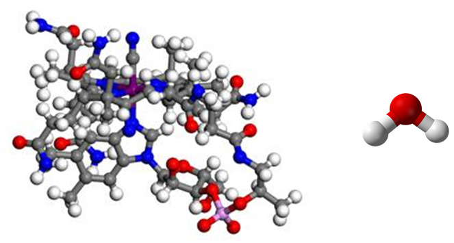 Dorothy Crowfoot Hodgkin was awarded the Nobel Prize for Chemistry in 1964 for her work on vitamin B12. The 3D image above shows how complex this molecule is compared to a simpler molecule like water. This Nobel Prize also acknowledged that her research had helped create a whole new field of research – structural biology. She was the third woman to receive the Nobel Prize in chemistry, following Marie Curie and Irene Joliot-Curie.