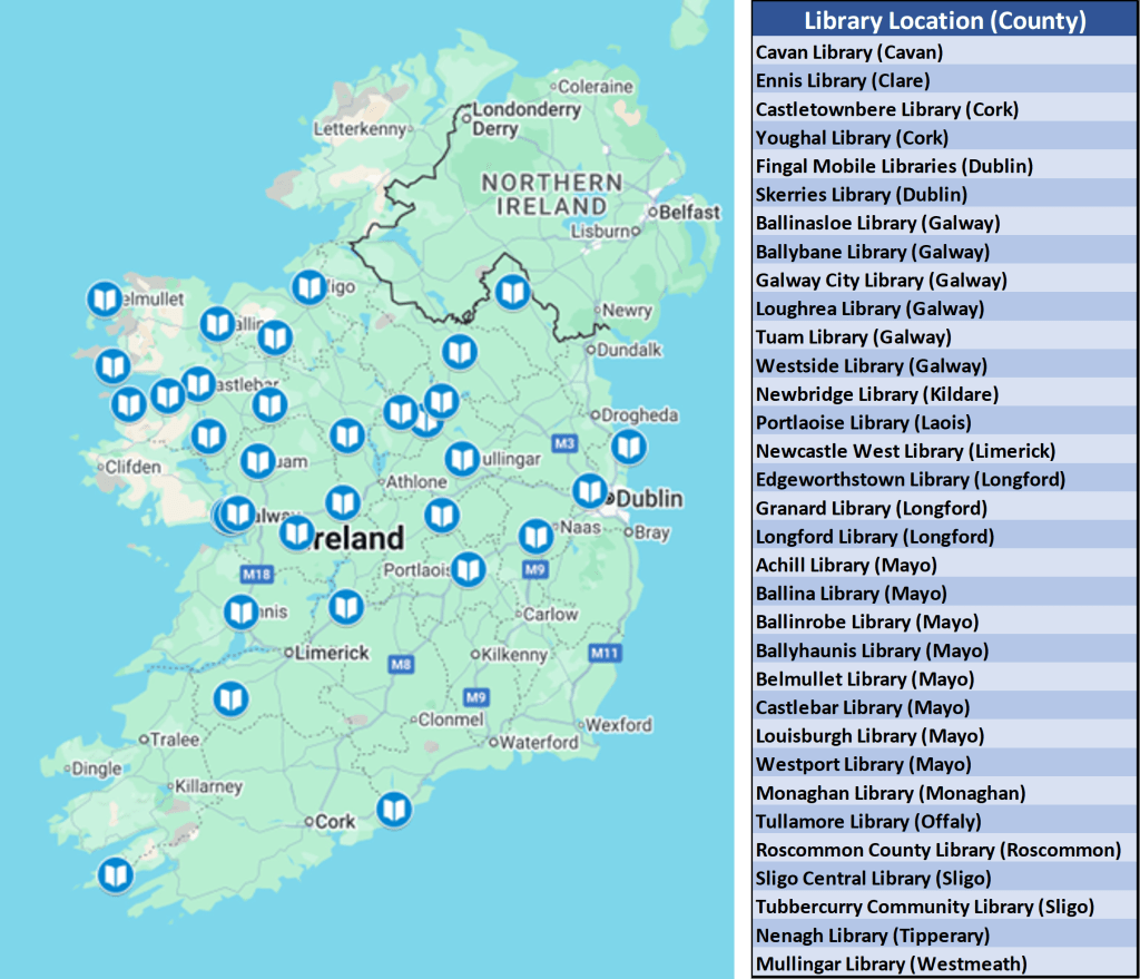 Through a partnership with the Foróige Digital Libraries scheme, ReelLIFE SCIENCE has placed AV kits containing these common filming equipment items in over 30 libraries in 16 counties around the country. Schools and groups participating in ReelLIFE SCIENCE can borrow these kits from their library to help them become the filmmakers of the future! Check out the table below to see if your library is listed!